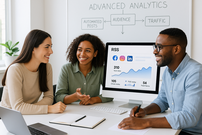 Kurseni kohë dhe mos humbisni kurrë një përditësim: Ndani menjëherë artikujt, podkastet ose videot më të fundit nga çdo burim RSS në Facebook, Instagram, X, TikTok dhe më shumë — pa duar dhe gjithmonë në orar.